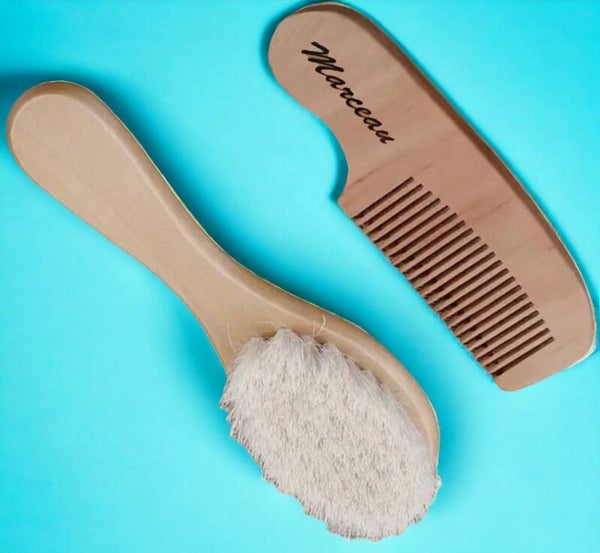 Offrez ce joli duo brosse / peigne en bois naturel personnalisé pour bébé.