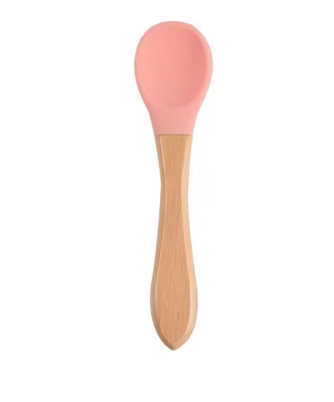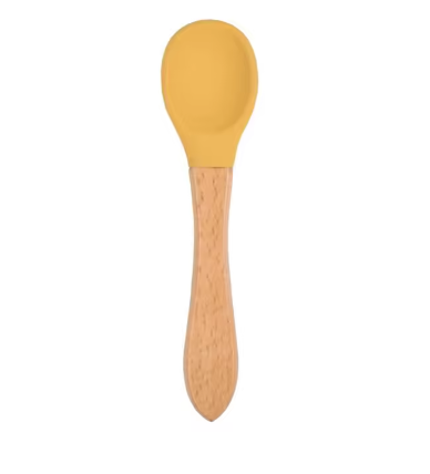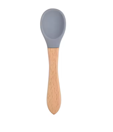 Cuillère bébé en silicone et bois de qualité pour que les bébés puissent l'utiliser en toute confiance.